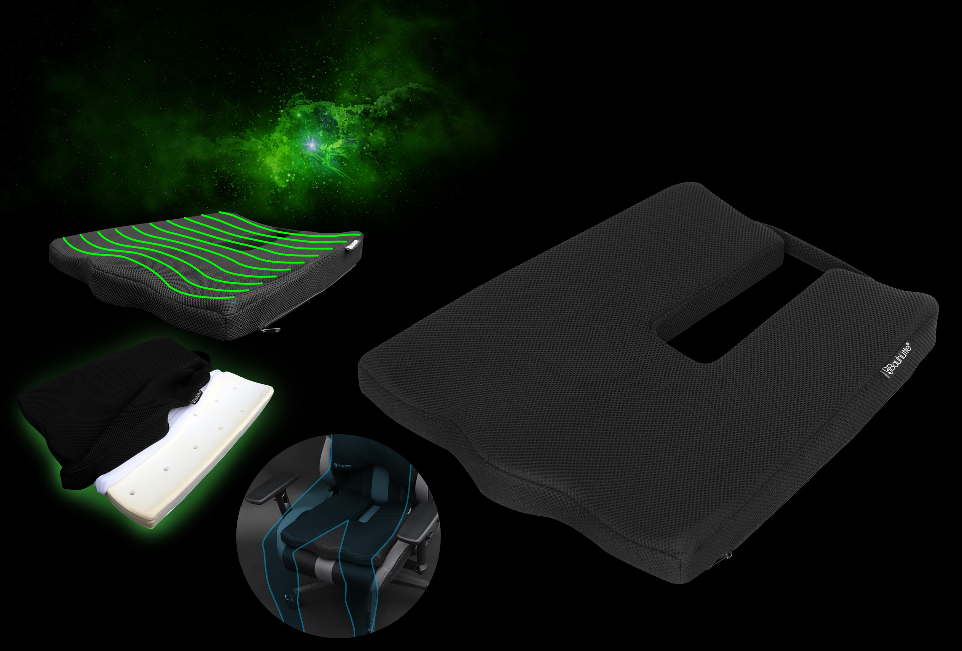 チェアの座面にはゲーミング座布団G。
