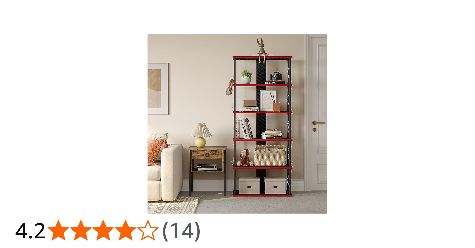 棚のふちが赤いデザインになっていて部屋のコンセプトにピッタリです。